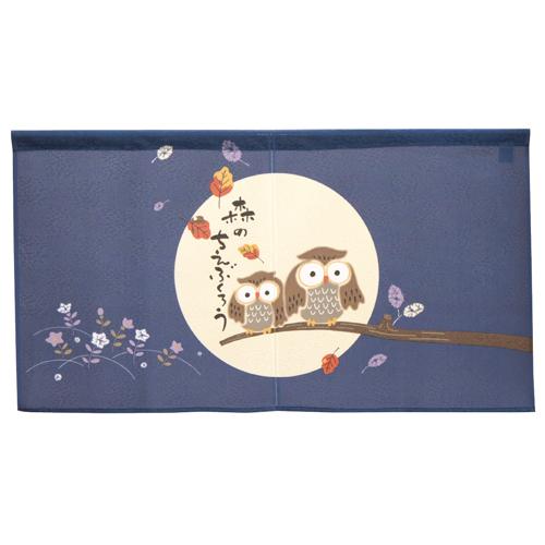市松柄レース縁起物のれん 42209 ふくろう BL 450