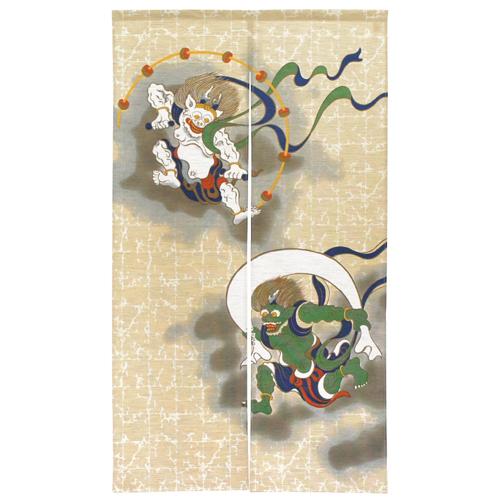 市松柄レース和柄のれん 42169 風神雷神 市松レース