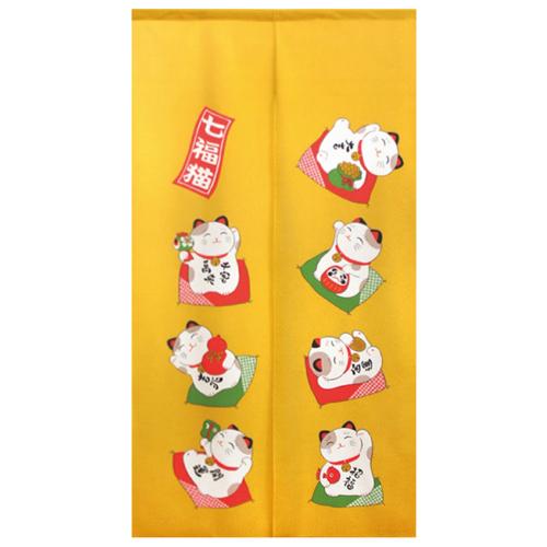 市松柄レース縁起物のれん 42228 開運七福ねこ YE