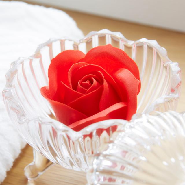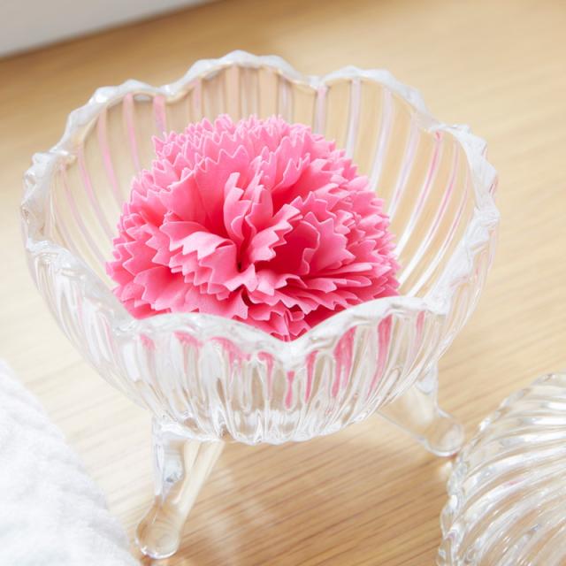 まるで生花のようなディテール。彩りやアクセントとして飾る空間を演出します。飾って、香って、お風呂で楽しめる「花のカタチの入浴剤」です。小さいフォルムなのにボリューム満点のカーネーションとローズ。