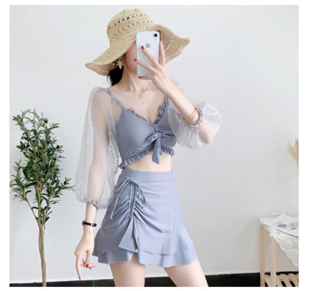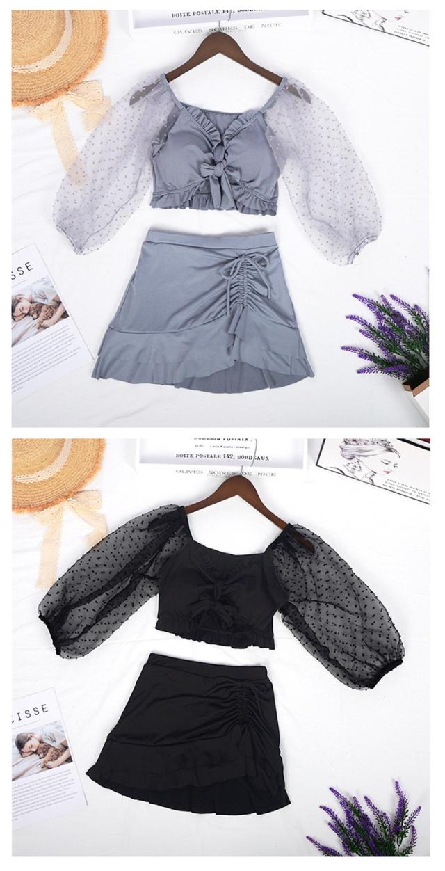 水着 レディース 2点セット 夏 小胸 バンドゥ 水着セット ビキニ パレオ 大きいサイズ リゾート パッド付き 韓国風 体型カバ