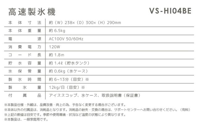 VERSOS 高速製氷機 VS-HI04BE ベルソス 水を入れて ボタンを押すだけ 手軽に製氷できる 自動製氷機 氷がすぐできる 製氷時間 6〜13分 ![]() ![]() ![]() ![]() ![]() ![]() ![]() | ||||
