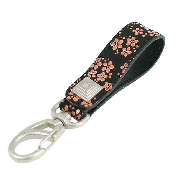 印伝 甲州印伝 印傳屋 上原勇七 キーホルダー 4701 忘れな草 黒地×ピンク漆 鹿革 本革 レザー 花柄 ブランド 冬ギフト バレンタイン 贈り物 YM01