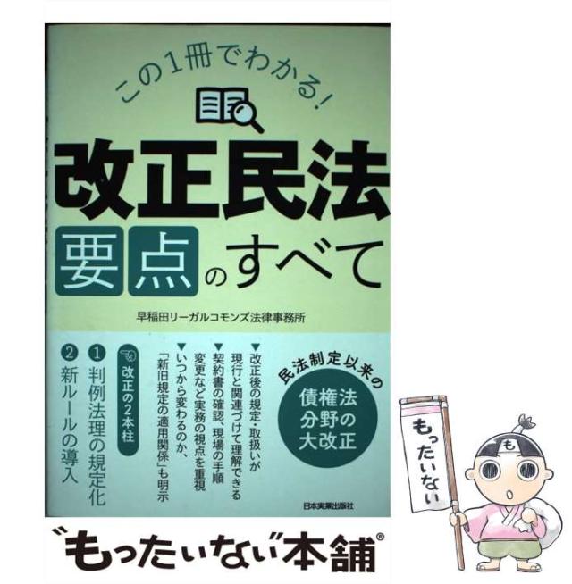 商品名:【中古】 この1冊でわかる! 「改正民法」要点のすべて / 早稲田リーガルコモンズ法律事務所 / 日本実業出版社 [単行本(ソフトカバー)]【メール便送料無料】