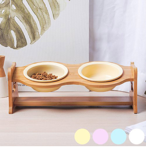 ペティファーム 陶器製 バンブースタンド付 ダブルフードボウル 食器 お皿 ボウル エサ 水やり 水飲み 給水器 エサ台 Petifam【送料無料】