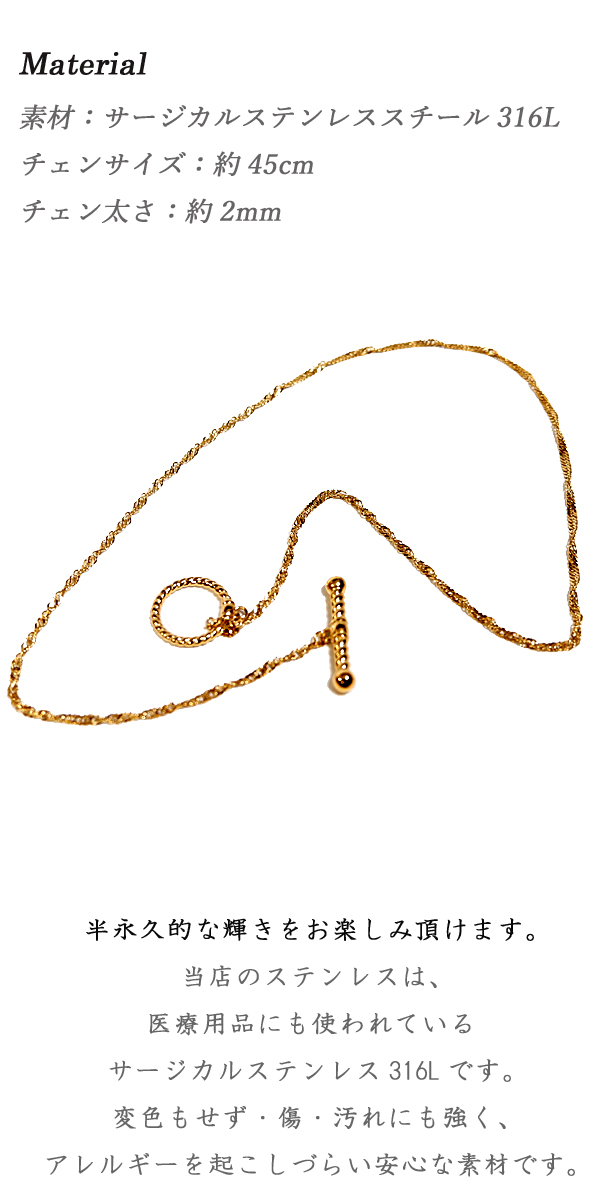 当店のステンレスは、医療用品にも使われているサージカルステンレス316Lです。変色もせず・傷・汚れにも強く、アレルギーを起こしづらい安心な素材です。 半永久的な輝きを演出します!