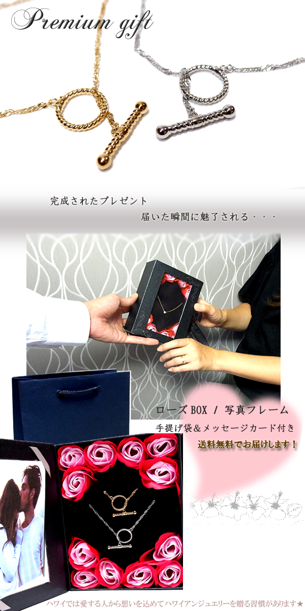 ペアネックレス ペアハワイアンジュエリー ツイスト ロープ チェーン 金属アレルギー対応 サージカル ステンレス 花 入浴剤 写真フレーム フラワー