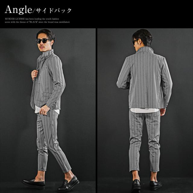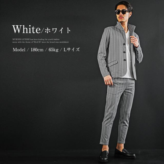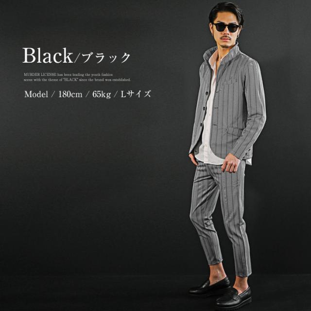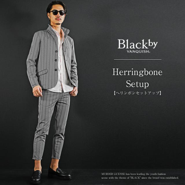 セットアップ メンズ スーツ ブランド アンクルパンツ テーパードパンツ イタリアンカラー ジャケット ヘリンボーン 細身 スリム タイト 白 黒 お兄系 オラオラ系 ちょいワル 夏服 夏 夏新作 新作 Black by VANQUISH ブラックバイヴァンキッシュ