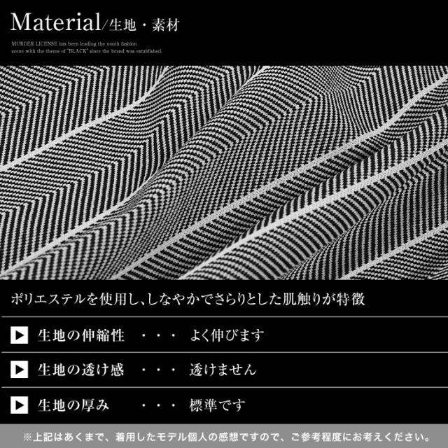 Black by VANQUISH 『ヘリンボーンジャケットセットアップ』【ヘリンボーンジャケットセットアップ】■Design/デザイン品よく纏うオトナのジャケットセットアップ。ヘリンボーン柄でデザインすることで高級感と品の良さを演出。ジャケットはイタリアンカラーを採用し、襟にはワイヤーを取り入れることで美麗で凛々しい首元を演出。アンクルパンツはテーパードシルエットでスッキリと魅せ、スタイルアップ効果も。程よくスマートなシルエットで無駄のないスタイリッシュな佇まいに仕上げる。オトナなセットアップSTYLEで刺激と品格のある日々を。■Material/素材感ポリエステルを使用し、サラリとした肌触りが特徴。伸縮素材を配合しており、しなやかさのある着用を実現。