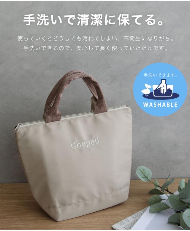 シンプルな同色ロゴ刺繍が入ったソフト素材を使用したランチバッグ