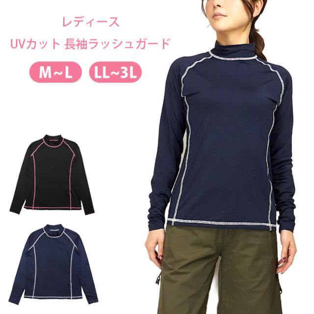 【メール便送料無料】【大きいサイズあり】レディース 長袖ラッシュガード水着単品 M〜L LL〜3L ロングスリーブ プルオーバー No.sw3238