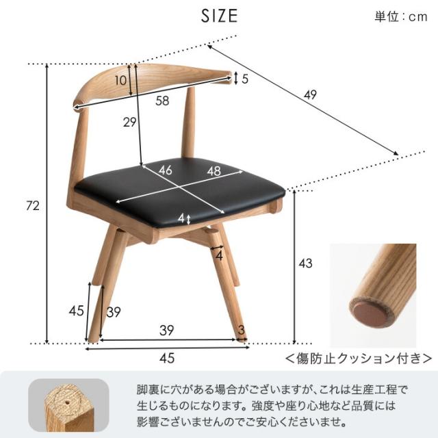 回転 ダイニングチェア 完成品 天然木 無垢 ダイニングチェアー ダイニング 木製 イス 椅子 チェアー ブラウン ナチュラル シンプル クッション 北欧 おしゃれ