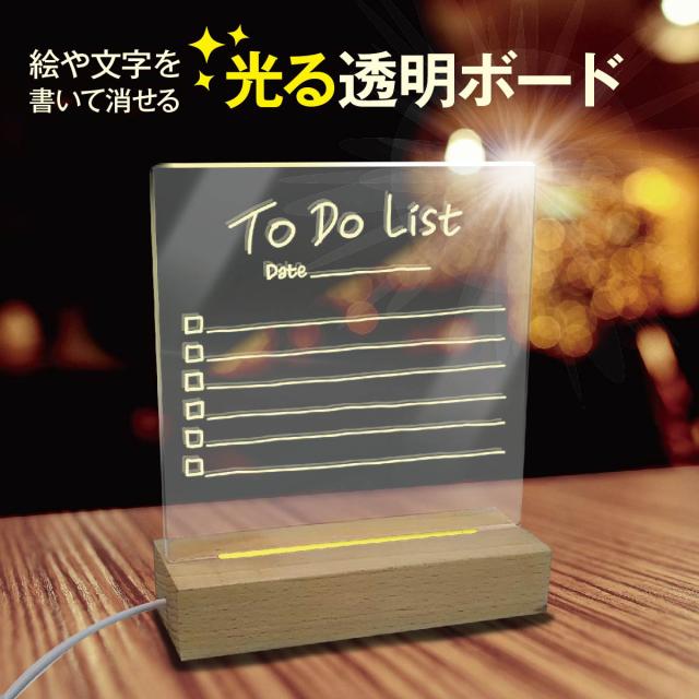 光る 透明ボード メッセージボード 光る透明ボード LEDスタンド 手書き 消せる LED看板 インテリア おしゃれ メッセージ プレゼント 雑貨 light-board