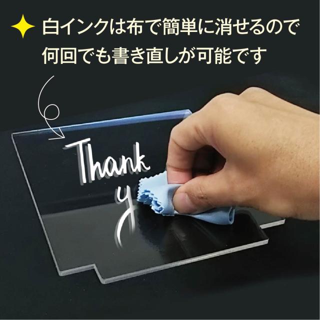白インキは布で簡単に消せるので、何回でも書き直しが可能です。