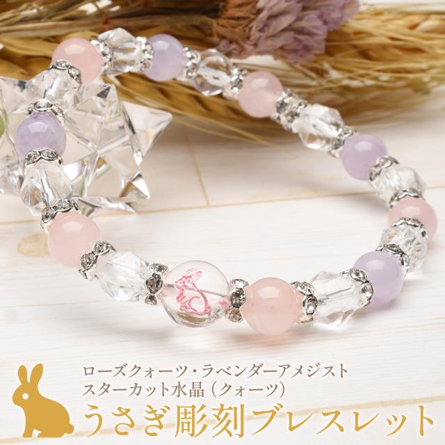うさぎ 縁結び 飛躍 ローズクォーツ ラバンダーアメジスト 水晶 クォーツ ブレスレット アクセサリー パワーストーン 天然石 かわいい 卯 干支守 _A1206