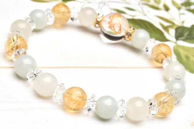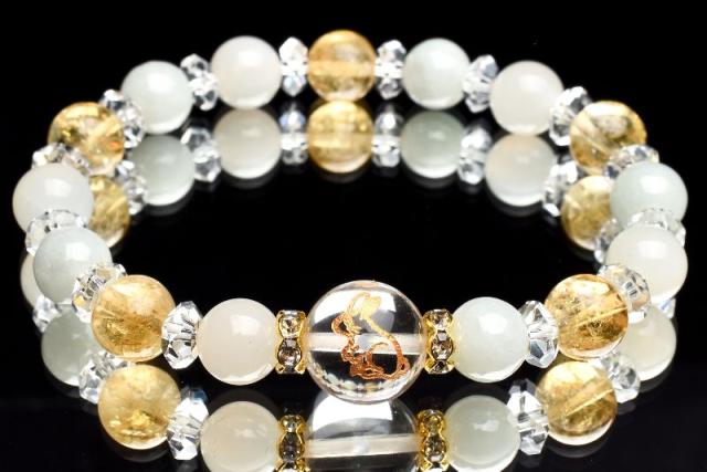 うさぎ ヒーリング 飛躍 ビルマ翡翠 シトリン ムーンストーン 水晶 クォーツ ブレスレット アクセサリー パワーストーン 天然石 かわいい 卯 干支守 _A1212