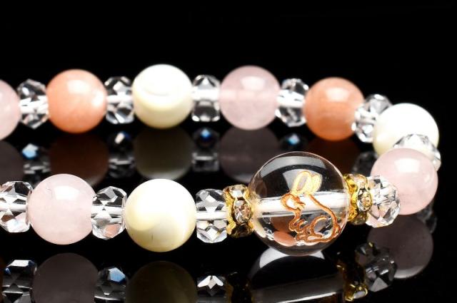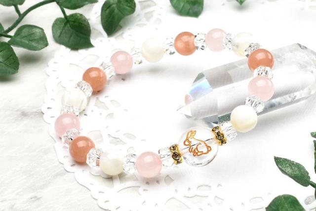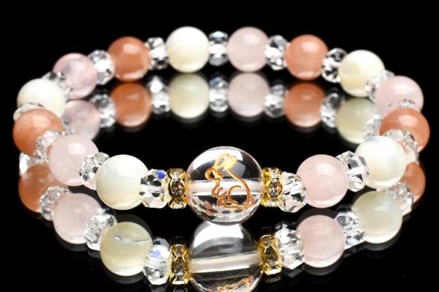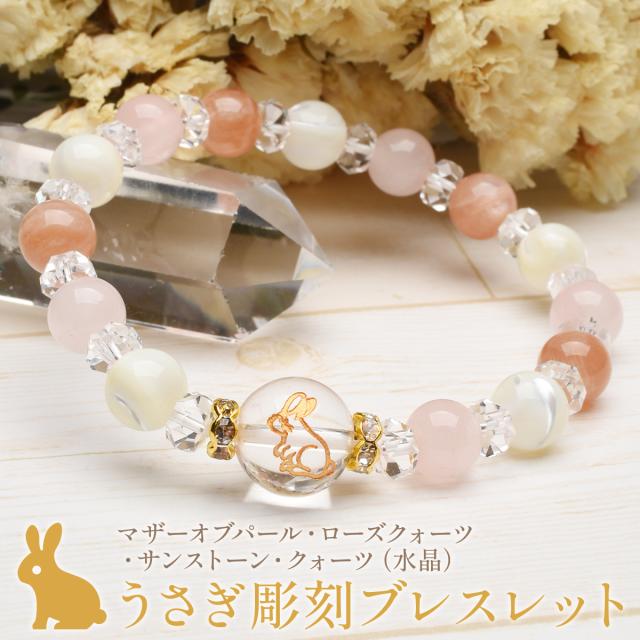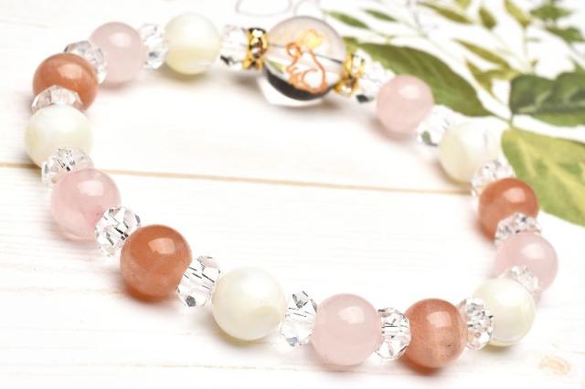うさぎ やる気アップ 飛躍 サンストーン ローズクォーツ マザーオブパール 水晶 クォーツ ブレスレット アクセサリー パワーストーン 天然石 かわいい 卯 干支守 _A1213