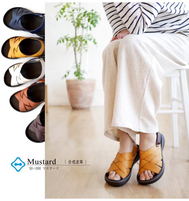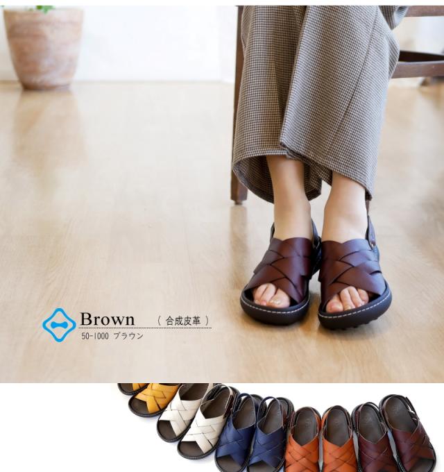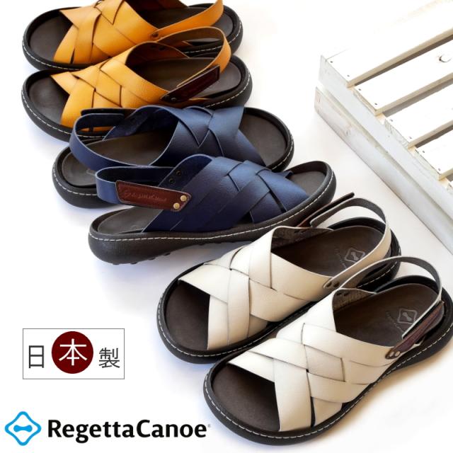 Re:getA リゲッタ カヌー サンダル レディース 日本製 バックベルト 手染め 編み込みデザイン コンフォート フラット グレー ネイビー マスタード ブラウン 面ファスナー 旅行 母の日 ギフト 3e