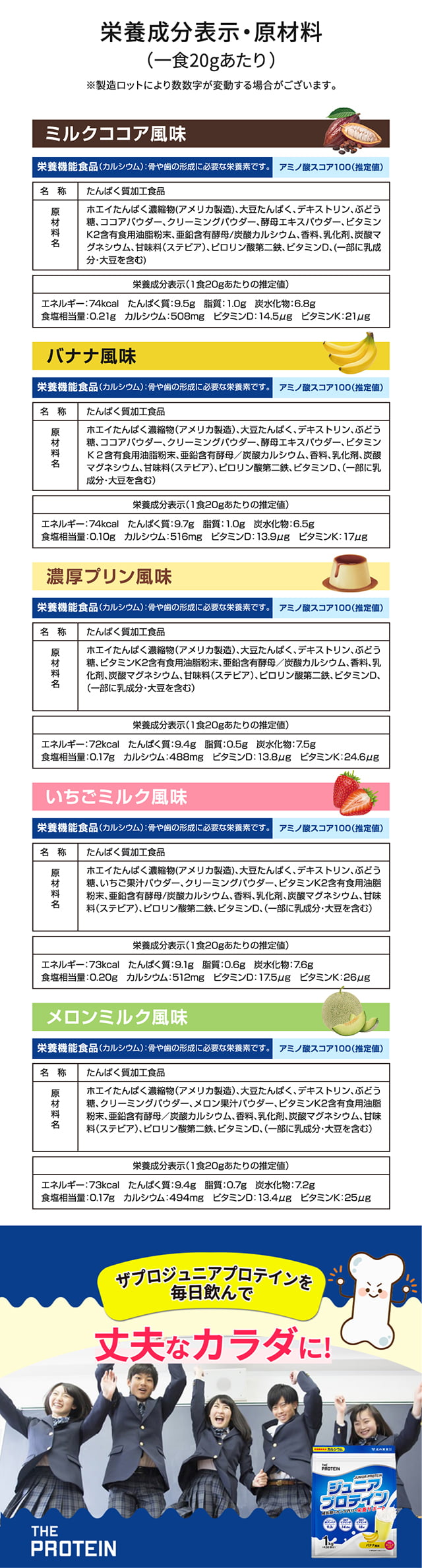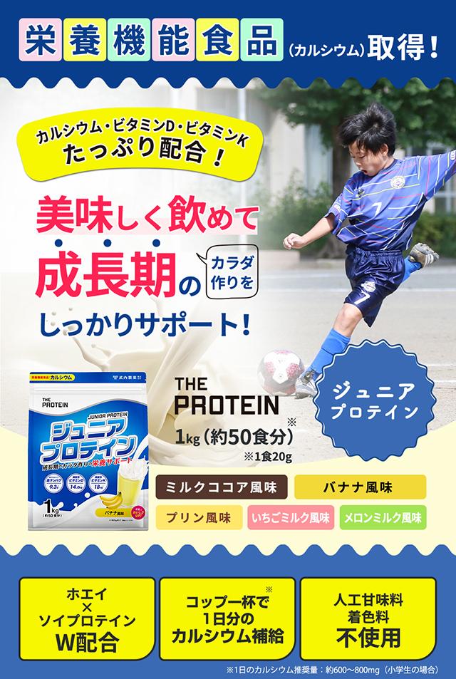 ジュニアプロテイン ザプロ 武内製薬 THE PROTEIN ジュニア プロテイン 美味しい ホエイプロテイン ソイプロテイン ホエイ ソイ ミルクココア バナナ カルシウム 栄養機能食品 ビタミンD ビタミンK 1kg 50食 子供 小学生 中学生 高校生 男女 兼用