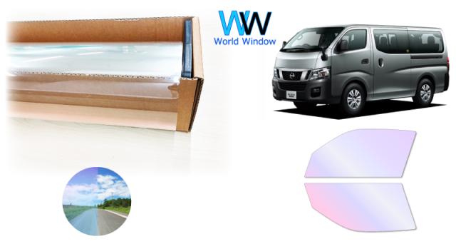 オーロラフィルム (グロウゴースト91) 遮熱フィルム 透過率90% ニッサン NV350 キャラバン (CW4E26/CS4E26/CW8E26/KS4E26/VW6E26/VR2E26) カット済みカーフィルム フロントドアセット オーロラタイプ ゴーストタイプ ホログラフィック カメレオンフィルム
