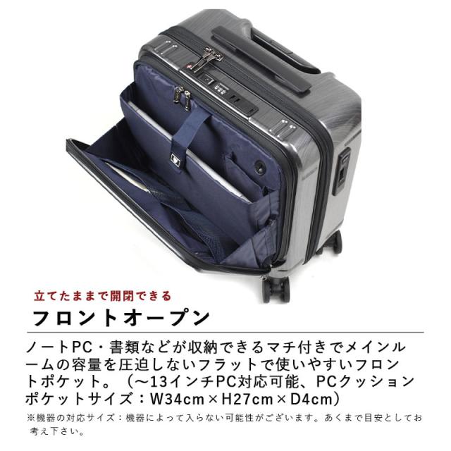 ストッパー付きでビジネスユースをより快適にするフロントオープンキャリー