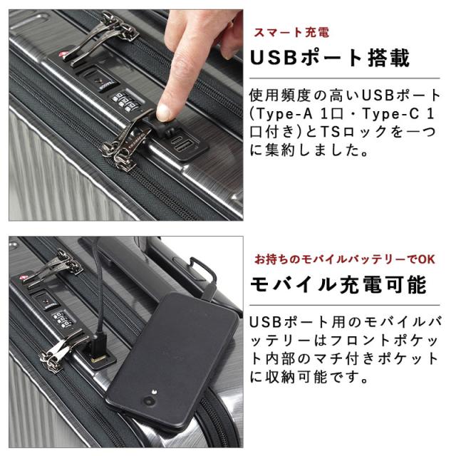 スマートフォンなどの機器の充電に便利なUSBポート2口付きのTSロック(ダイヤルロック式)を装備