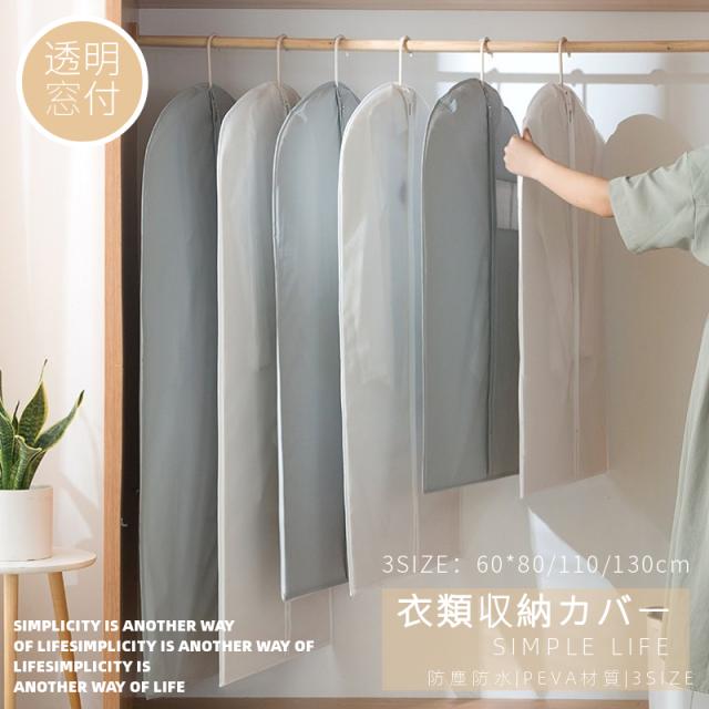 洋服カバー PEVA製 衣類カバー 1着用 ロング /ショート防水防虫防塵防湿 透明窓付 スーツカバー 衣類収納袋 ダストカバー/収納バッグ 型崩れ防止 繰り返す使用【K786】