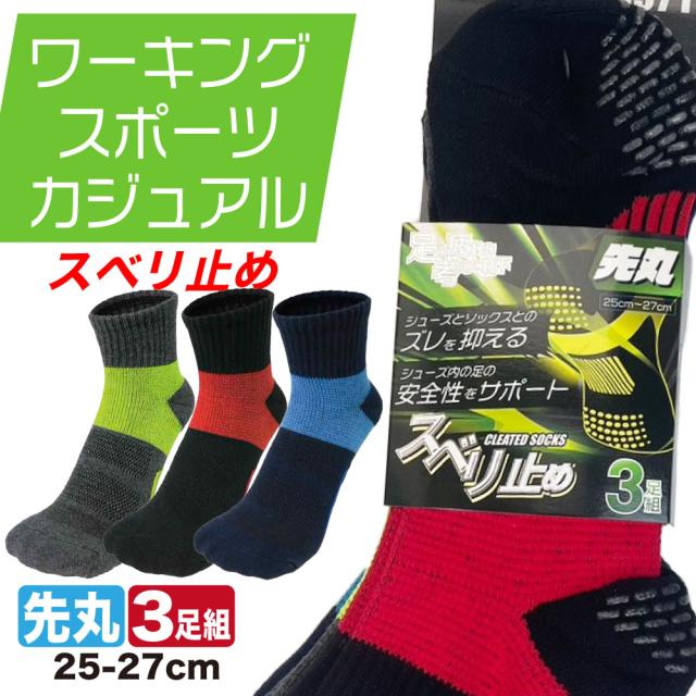 靴下 メンズ すべりどめ スポーツソックス 3足セット 足の疲れを考えた セミショート丈 25cm-27cm 富士手袋