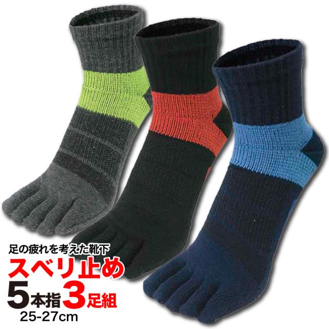 五本指靴下 メンズ すべり止め付 ショート丈 3足組 足の疲れを考えた テーピング サポートソックス 25cm-27cm 富士手袋