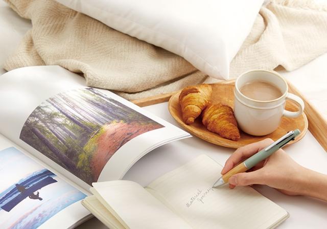オン・オフ問わず暮らしに溶け込み、毎日の筆記シーンに安らぎや心地よさを与えるようなまろやかで優しいカラーリングのデザインを採用。