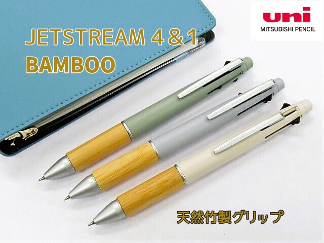 グリップ部に軽やかで美しい『天然竹材』を採用したジェットストリーム多機能ペン