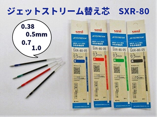 三菱鉛筆 ボールペン替え芯 SXR80K 紙パッケージ 88円 20%OFF ジェットストリーム替え芯 038 05 07 10 全長87.7mm 多色用 メール便 OK