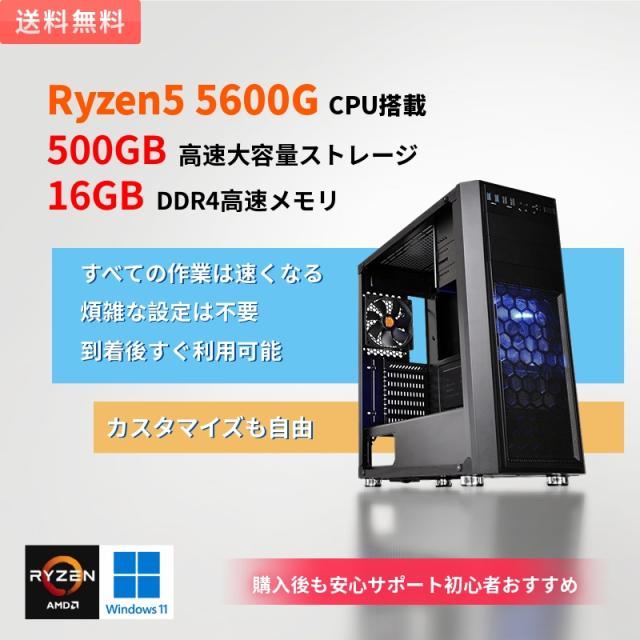 仕事向けデスクトップパソコン Ryzen 5 5600g メモリ16GB SSD500GB AMD CPU搭載 Windows10 11 Pro