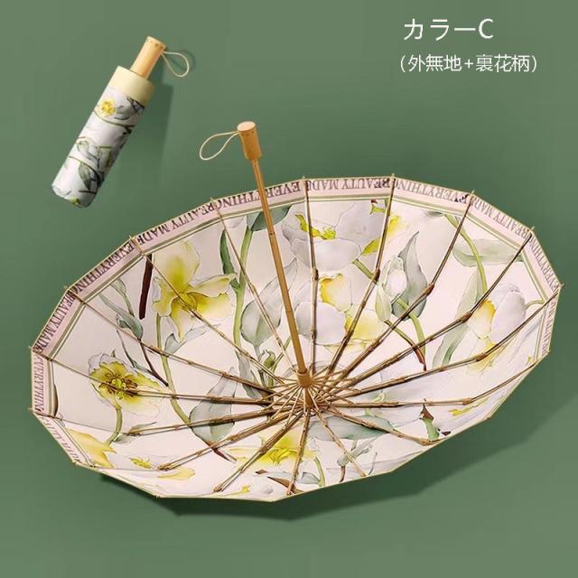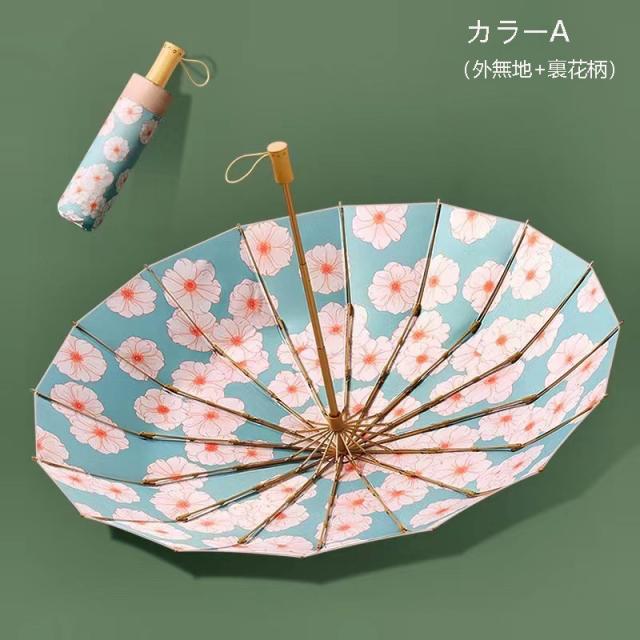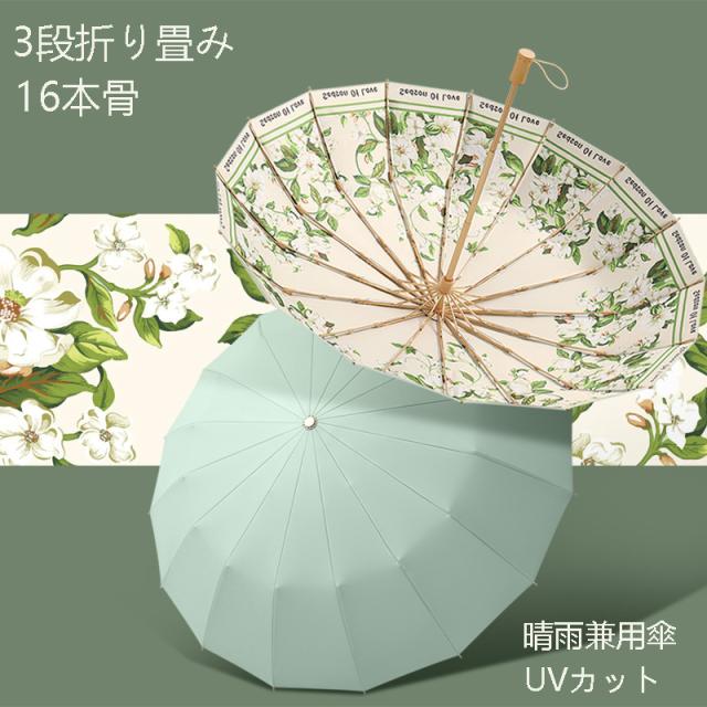 折りたたみ傘 レディース 日傘 雨傘 花柄 晴雨兼用傘 折り畳み 折りたたみ傘(3つ折) プリント オシャレ 可愛い 女性用 手動 傘袋付 16本骨 UVカット 紫外線対策 日傘折り畳みレディース 折りたたみ 傘 レディース 軽量 雨傘 レディース 撥水加工 耐強風