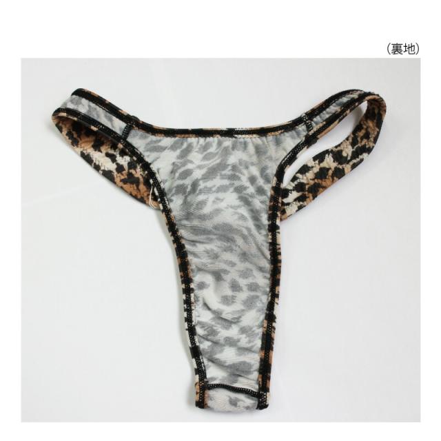 La-pomme ラポーム レディース ヒョウ柄プリント マイクロファイバー生地 Tバックビキニ 日本製 (M・Lサイズ)21976