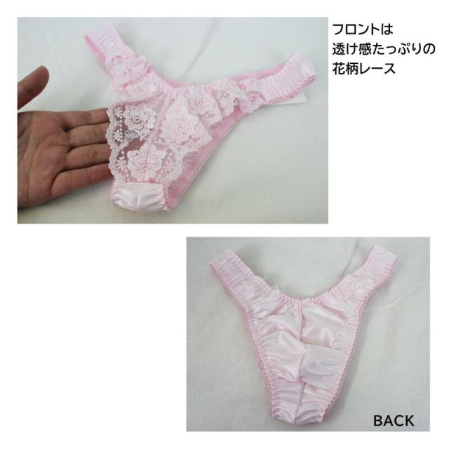 La-pomme ラポーム レディース 花柄レース ハーフバック 日本製 フェリカ生地 光沢 セクシー Mサイズ セール 319170