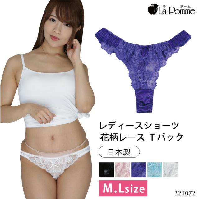 La-pomme ラポーム レディース Tバック ショーツ 花柄レース フェリカ生地 セクシー 肌触りが良い 光沢 日本製 M・Lサイズ 321072