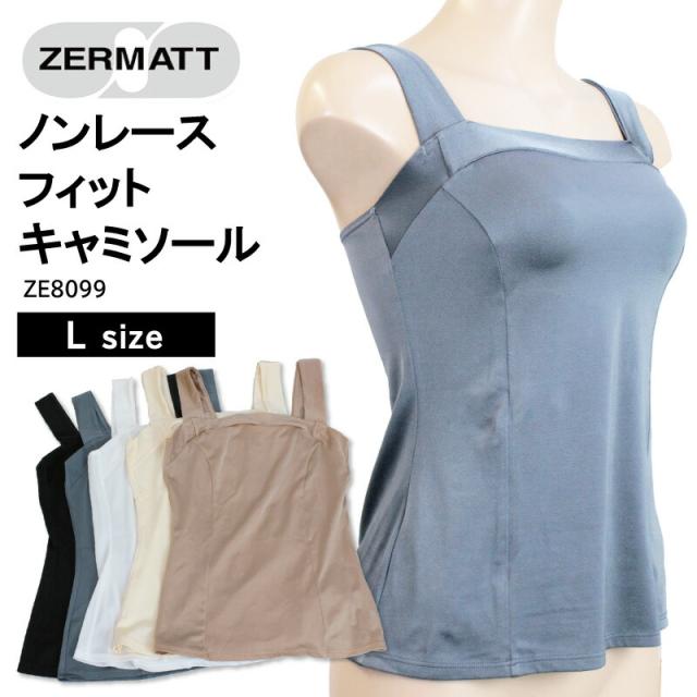 【ZERMATT(ツェルマット)】 ノンレース キャミソール インナー 胸元 フラットライン 幅広ショルダーストラップ 立体設計 プリンセスライン 日本製 (Lサイズ) ZE8099