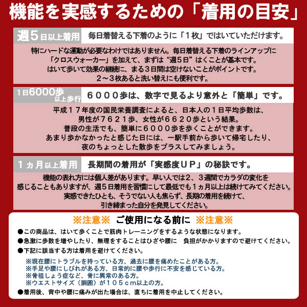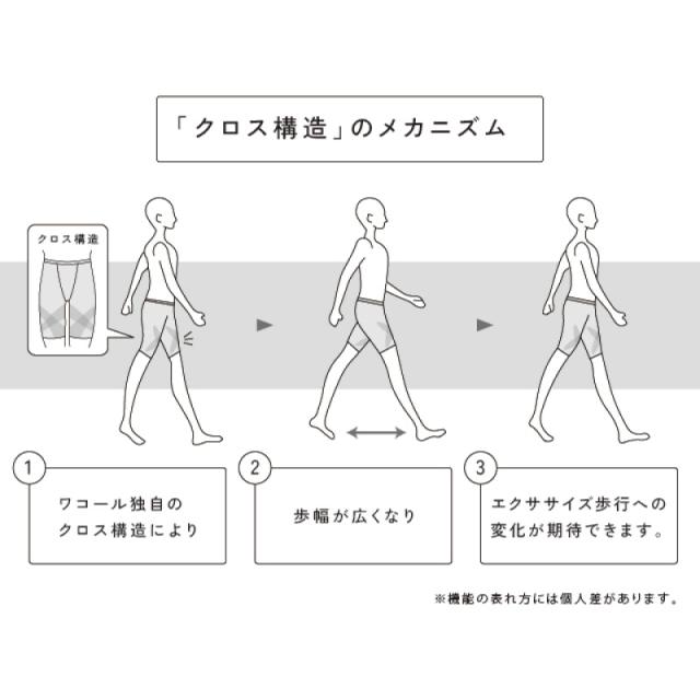 <前開き>ジャストウエスト丈(おへその下部分まで)・ロング丈 ■クロス構造 ワコール独自のクロス構造により歩幅が広いエクササイズ歩行への変化が期待できる。 ※機能の表れ方には個人差があります。 ※商品についている「安全に関するご注意」をよく読んでご使用下さい。 ■ムレ軽減設計 フロントとバックの両面に「エアスルー機能」を搭載した、ダブルエアスルータイプ。動くたび、熱や湿気を逃して、ムレ感をおさえる。 ■フリーなカッティング(裾部分) 裾部分にフリーなカッティングの素材を使用し、アウターにラインが出にくい。 |