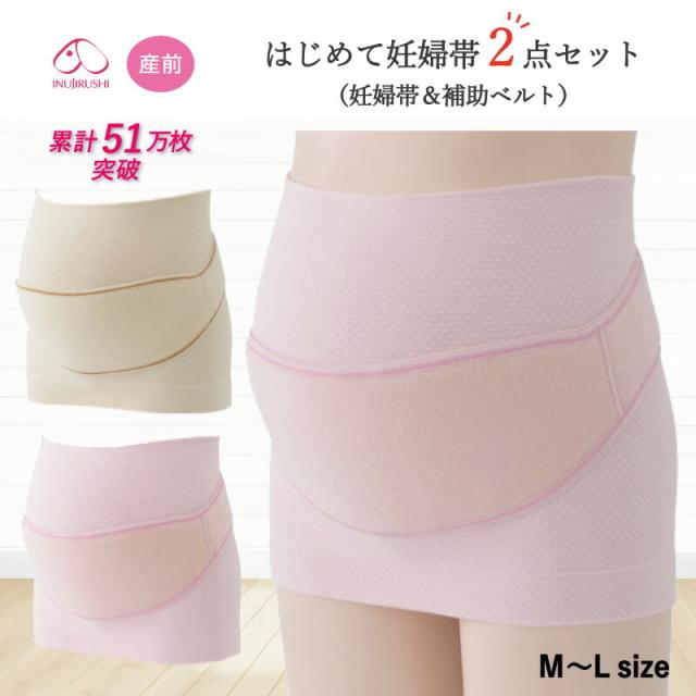犬印本舗 マタニティ 妊婦帯 補助ベルト 産前用 犬印はじめて妊婦帯セット 2点セット 日本製 出産準備 出産祝い 初産 プレゼント ギフト 贈り物 戌の日 ママ 綿100 腹帯 M~Lサイズ HB-8106 HB8106 INUJIRUSHI 出産準備 サポーター ケア
