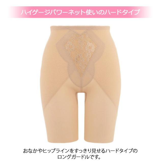| 特徴 | アウターにひびきにくい ハードタイプのロングガードル ハイゲージパワーネット使いのハードタイプ。 腹部のパネルとサイドから ヒップにかけての二重サポートでコントロールします。 ヒップアップ効果が高く、 綺麗なヒップラインをメイクする “3Dカッティング”仕様です。 脚口がフラットなヘム仕上げなので、アウターにひびきにくいです。 ※レース柄の出方が画像と多少異なる場合があります。 |