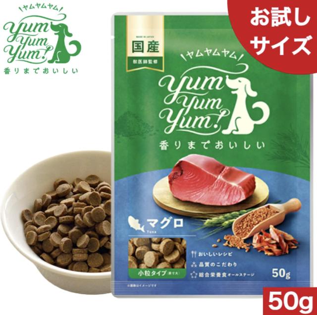 Yum Yum Yum! ヤムヤムヤム マグロ ドライタイプ 50g 正規品 国産素材 ドッグフード ドライフード 保存料 着色料 香料等 合成添加物 一切不使用 新鮮 国産 無添加 ヒューマングレード 小粒 犬 成犬用 アダルト 老犬用 シニア犬 子犬用 パピー お試し