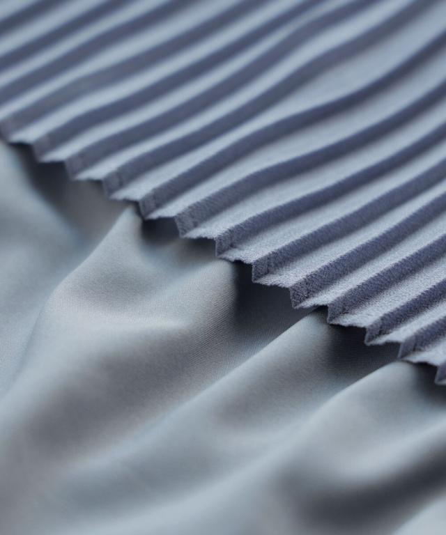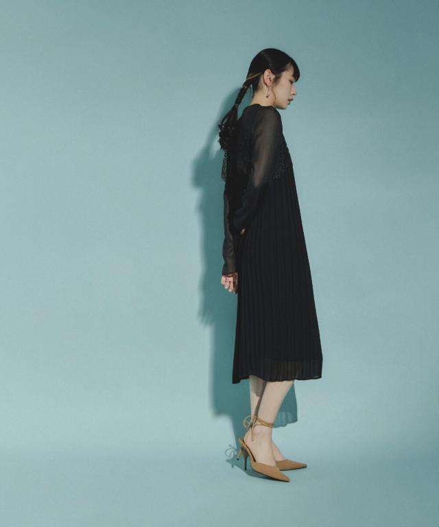 細めのプリーツが上品な印象を残します。