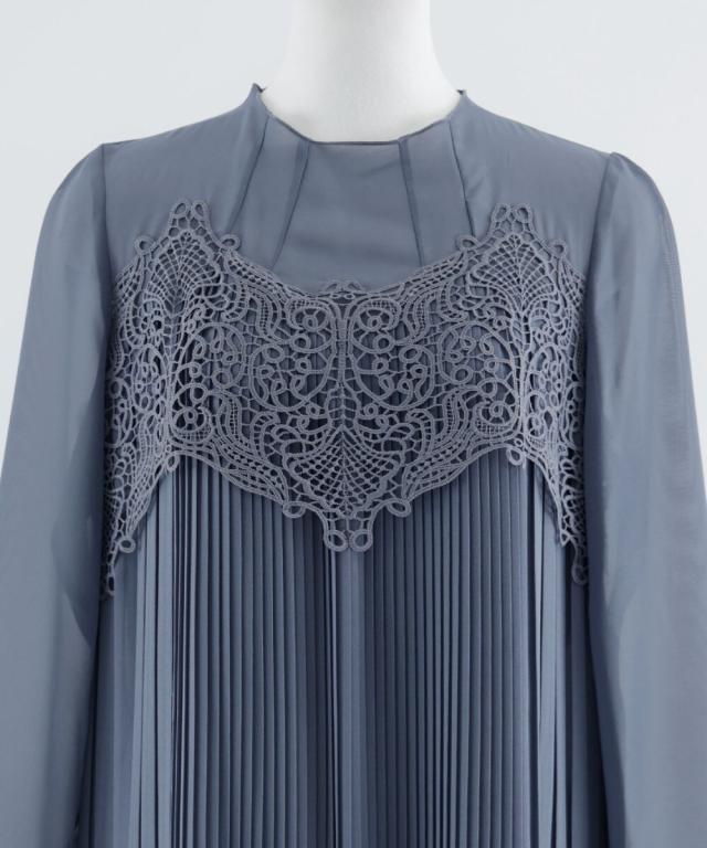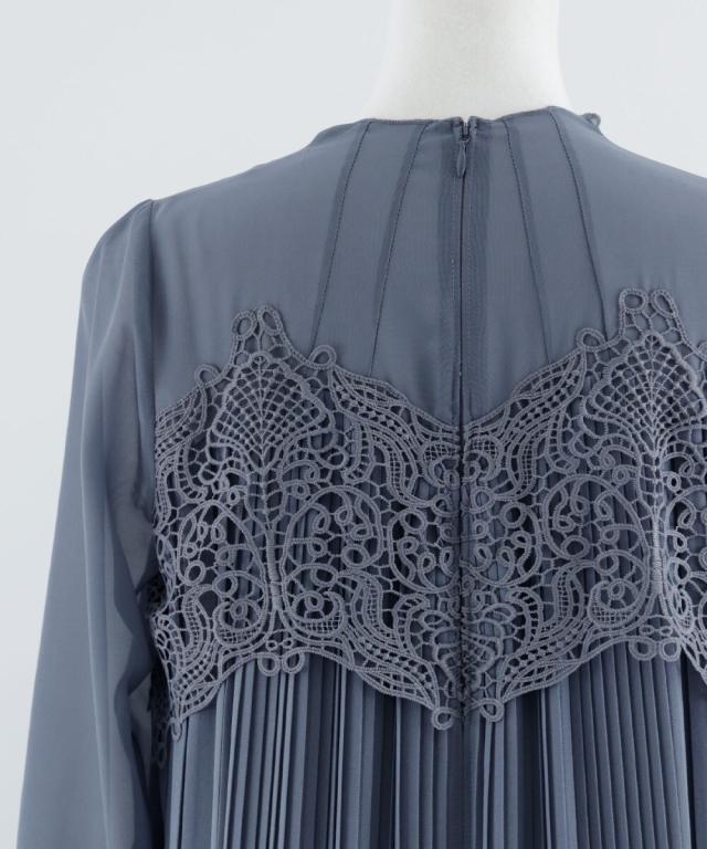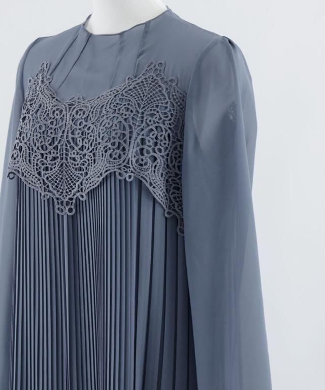 胸元のカットワークレースがクラシカルなパーティードレス。