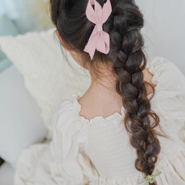 大人っぽい印象のスエード生地のリボンのヘアクリップは、お子様のサラサラな髪の毛もしっかりキャッチします。クリップ部分は布で覆われているので、髪の毛が引っかかりにくいです。