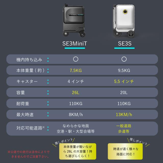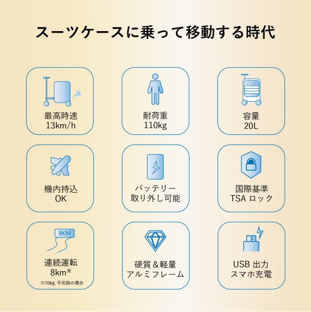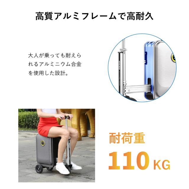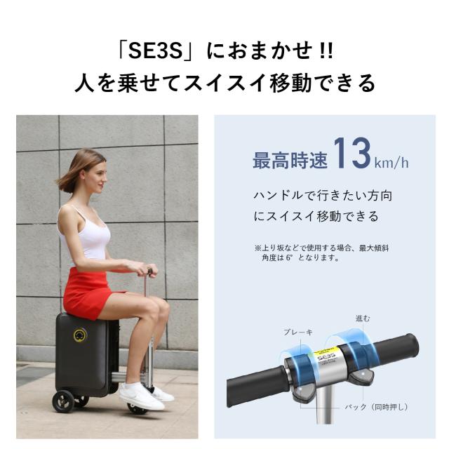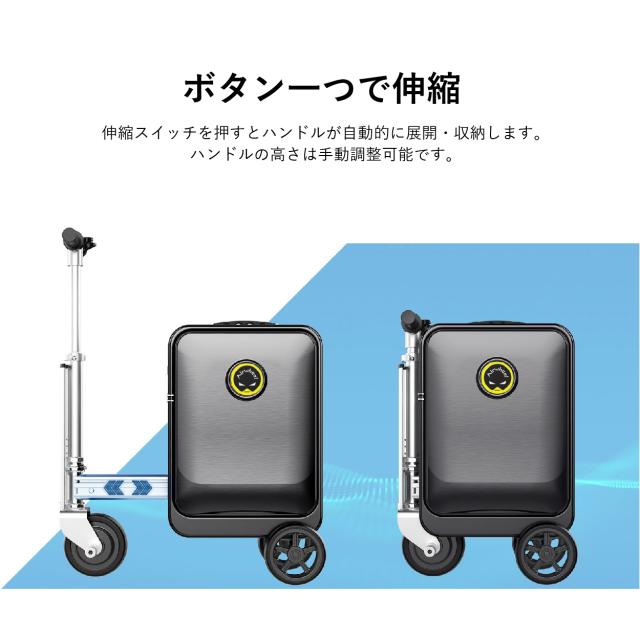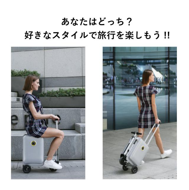 ★電動自転車感覚でスーツケースを運転できます。ハンドキャリーせずに、乗って移動できます。