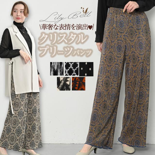 プリーツ パンツ リブパンツ ワイドパンツ 柄 プリーツ パンツ レディース エスニック イージーパンツ ストレートパンツ 春 夏 秋 メロー ウエストゴム オリエンタル ワイドプリーツパンツ ファッション らくちんパンツ ブラック ブルー ドット ドット柄 水玉 水玉柄