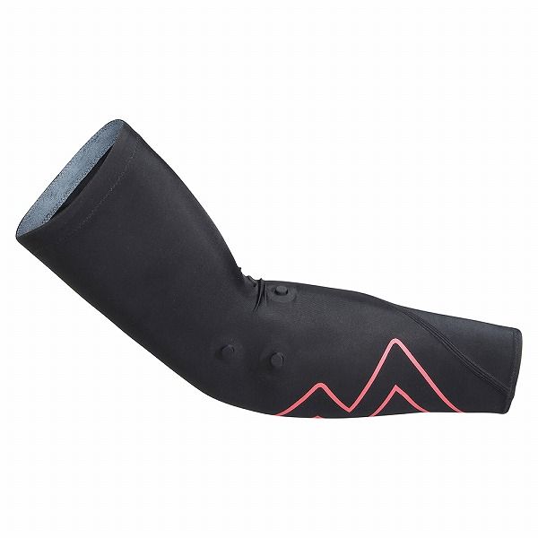 上腕から手首までをカバーすることで筋肉を適度にホールドし、筋振動を軽減する磁気アームスリーブ。プリント柄違いの左右セットです。