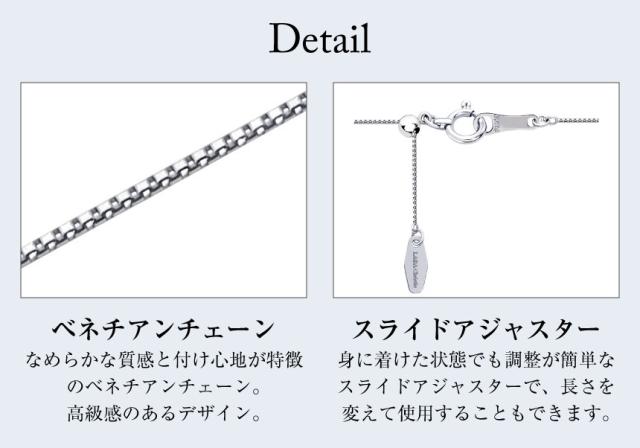 チェーンネックレスはスライドアジャスターになっているので、最大45cmまで自由な長さで調節可能。