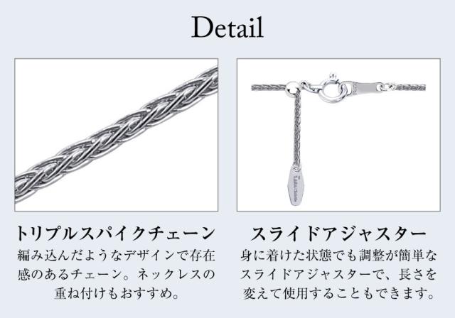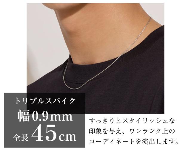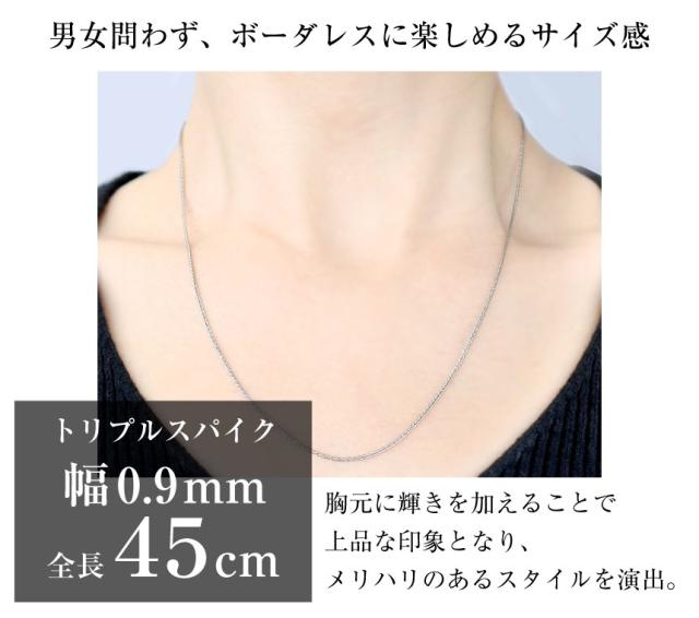 Pt850トリプルスパイクチェーン。シンプルにそのまま着ければデコルテにアクセントにもなり、お手持ちのネックレスと重ね付けすれば上級オシャレを演出します。